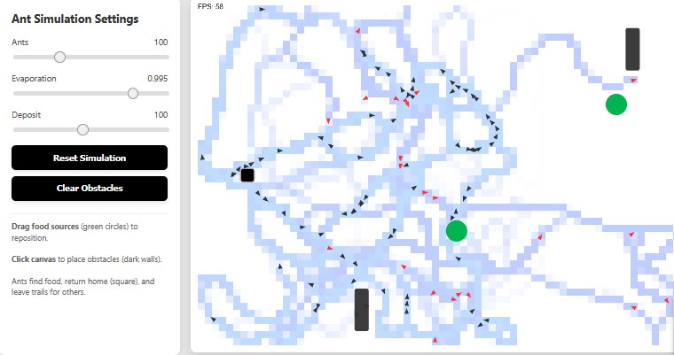Ant Colony Pathfinding – Intelligence(s) 👁 40 | Tristan Schulze lately updated this on Oktober 22, 2025 CODE & DEMO: https://codepen.io/Tristan-Schulze/pen/YPwaNOw CODE & DEMO: https://codepen.io/Tristan-Schulze/pen/YPwaNOw