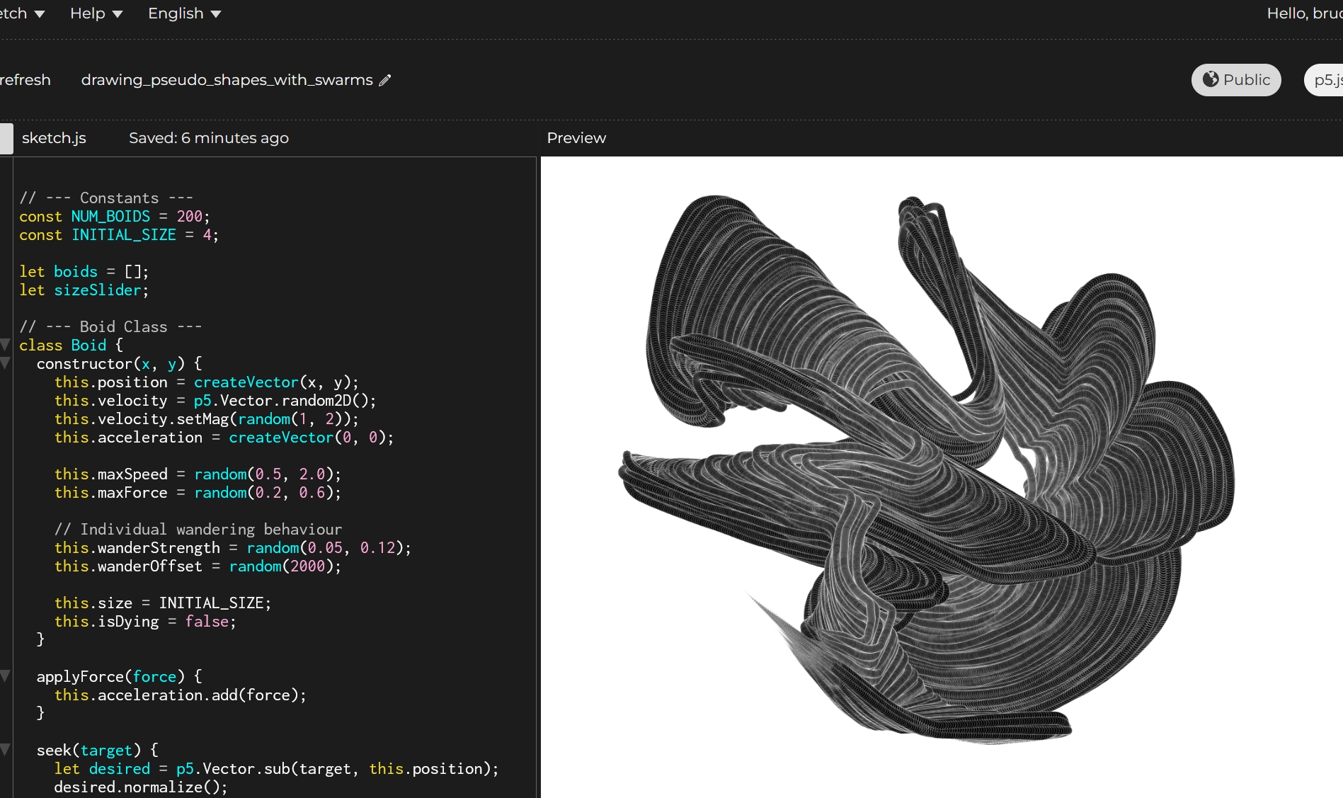 drawing 2D shapes with basic swarm/boid brush behaviour This simple swarm logic driven drawing tool uses the p5.js canvas and …