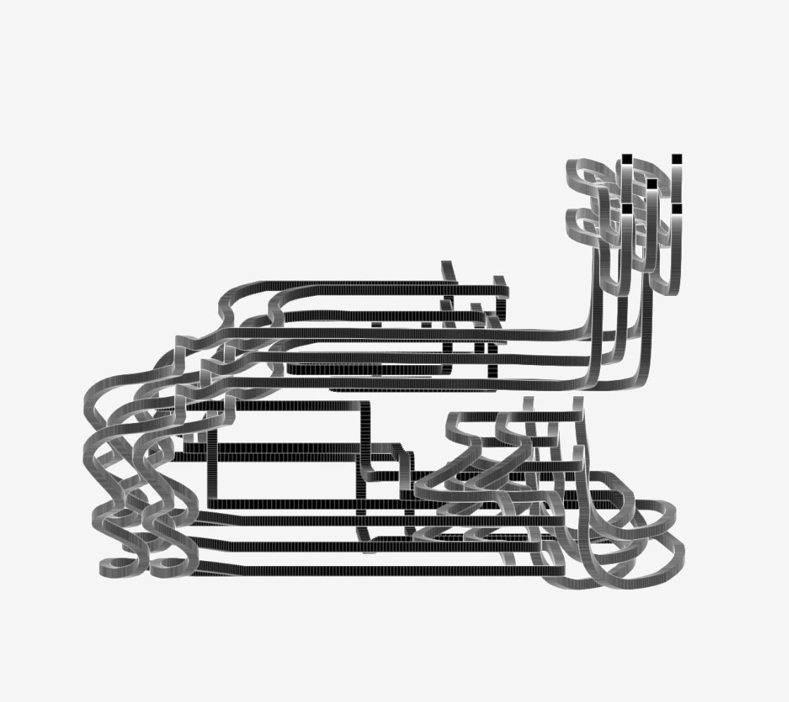 Die Praxis von Kokkugia unter Rob Stuart-Smith trieb diese Logik weiter in den Bereich der Schwarmintelligenz. Hier wurden Agentenschwärme explizit zur Generierung und Optimierung von komplexen Gitter- und Netzstrukturen eingesetzt. Die Agenten agieren wie intelligente Partikel, die entlang der Hauptspannungspfade einer Struktur fließen und so ein organisches, sich verzweigendes Aderwerk erzeugen. Diese von Schwärmen generierten Formen sind von einer inherenten Logik geprägt: Sie sind nicht arbiträr, sondern materialisieren die Kräfteflüsse in einem System. Dies führt zu Strukturen, die eine hohe strukturelle Effizienz bei minimalem Materialeinsatz anstreben – ein Prinzip, das in der Natur allgegenwärtig ist, man denke nur an die innere Struktur von Knochen oder Schwämmen.