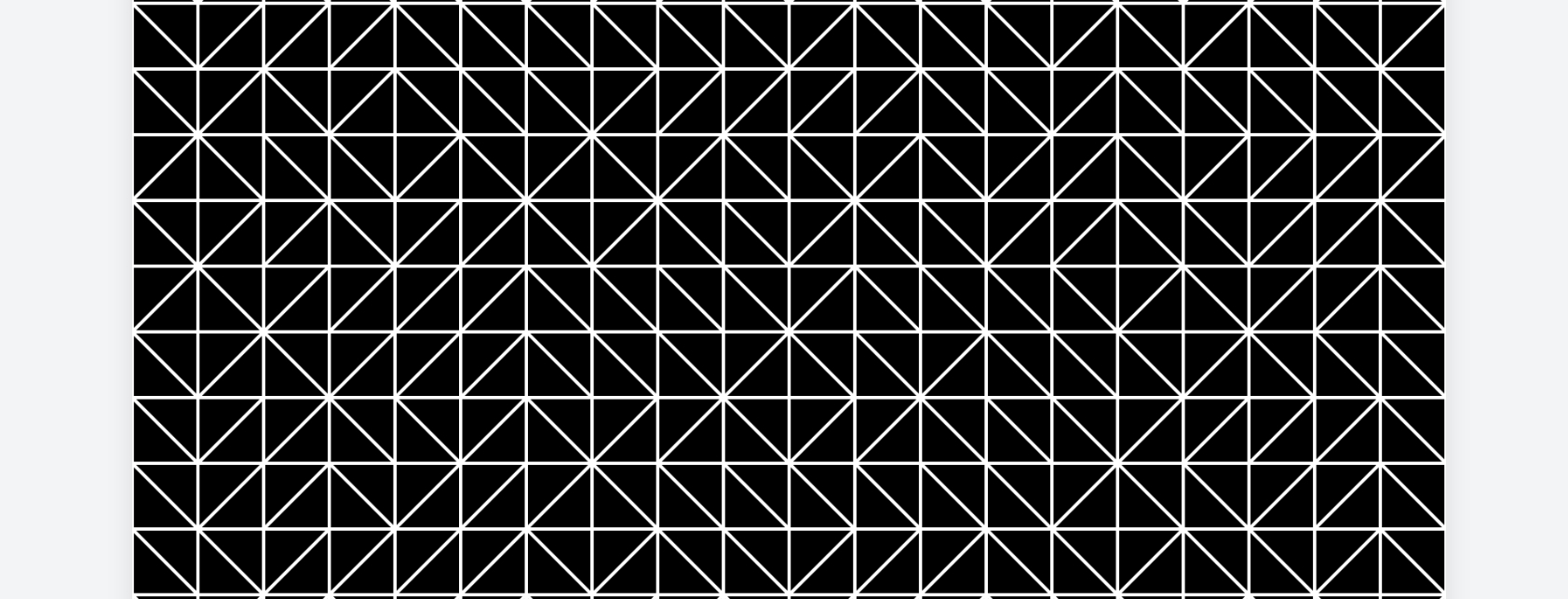 generative pattern folding experiments 👁 17 | Tristan Schulze lately updated this on November 7, 2025 DEMO & CODE: https://editor.p5js.org/brucexxxbanner/sketches/F0gIyK3O- basic grid with just random cell rotations DEMO & CODE: https://editor.p5js.org/brucexxxbanner/sketches/F0gIyK3O-