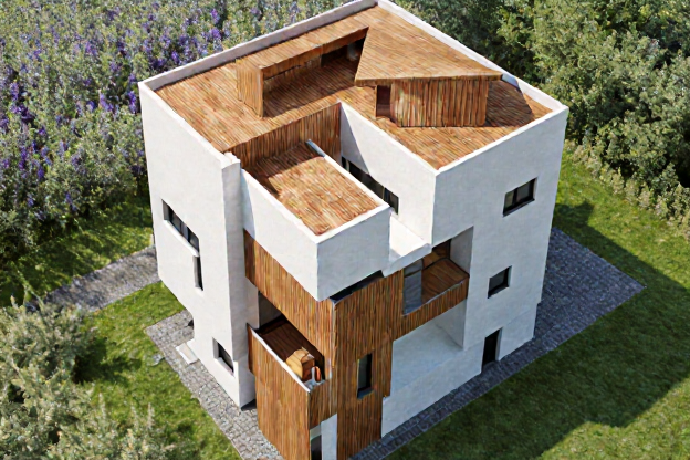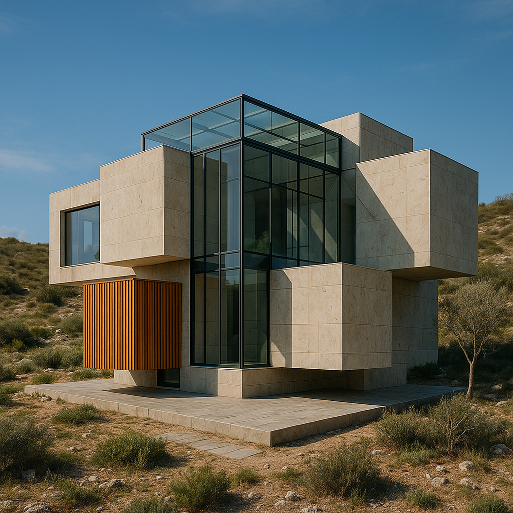 Die ersten Ergebnisse waren gestalterisch spannend, aber teilweise fehlerhaft – z. B. unlogische Fensterflächen, zu dünne Decken oder verzerrte Materialien. ChatGPT konnte diese Mängel sehr gut korrigieren: Tragfähige Proportionen, klare Fassadenraster und eine glaubwürdige Materialästhetik entstanden. Das Resultat war ein Gebäude, das man sich problemlos in einer realen Umgebung vorstellen könnte.