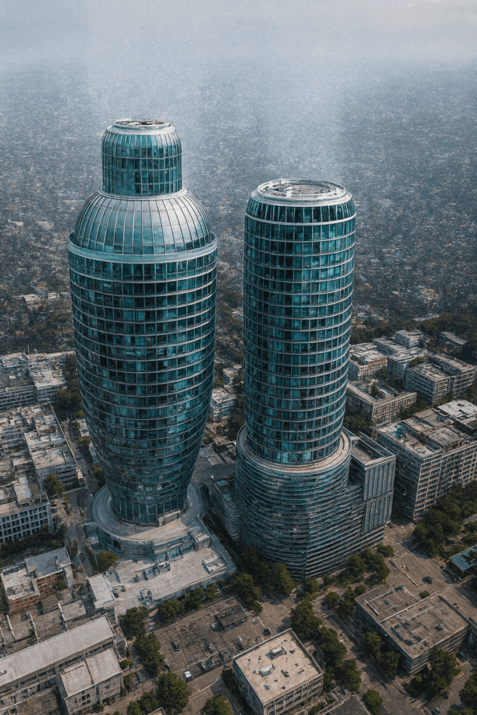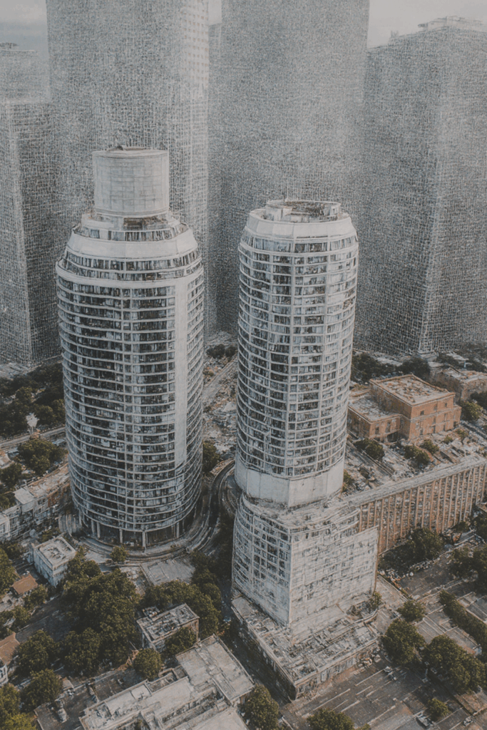 Ein einfaches Foto eines Martini-Glases diente hier als Ausgangsform – und genau diese klare, konische Silhouette machte es zu einer idealen Vorlage für ein KI-Hochhaus. Die Transformation war erstaunlich präzise: Die KI übernahm die elegante Trichterform, verlängerte den Stiel in eine tragende Turmstruktur und entwickelte daraus ein futuristisches, fast skulpturales Landmark.