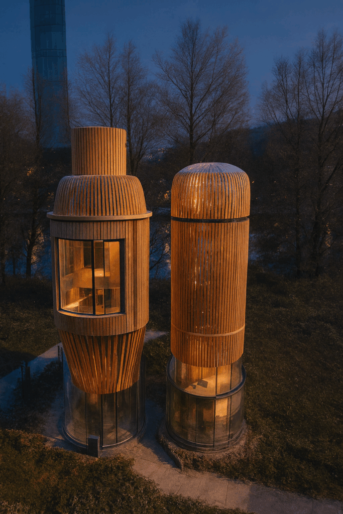 Beide Ergebnisse sind weniger als klassische Gebäude nutzbar, funktionieren aber hervorragend als Landmark, Kunstobjekt oder architektonisches Icon. Gerade dieses Objekt zeigt, wie gut KI den Charakter einer komplexen Struktur erfassen und in glaubwürdige architektonische Szenarien überführen kann.