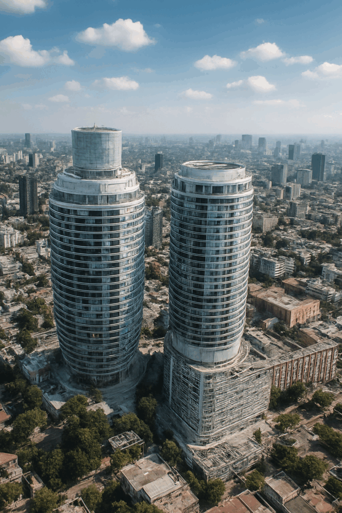 Das Ergebnis: Ein extrem ikonisches, fast utopisches Hochhaus, das zeigt, wie frei KI Formen übertragen und dennoch architektonisch lesbar machen kann.