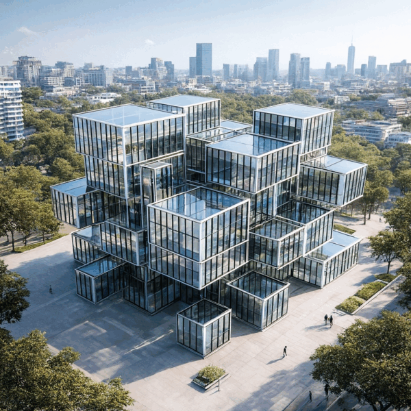 KI-Tools ermöglichen heute etwas, das vor wenigen Jahren noch völlig unrealistisch klang: Aus unterschiedlichsten digitalen oder analogen Ausgangsformen lassen sich innerhalb von Sekunden glaubwürdige architektonische Szenarien entwickeln. Moderne Modelle erkennen geometrische Muster, räumliche Beziehungen und Materialanmutungen allein anhand einfacher visueller Inputs – und übersetzen diese in komplexe Architekturkompositionen mit erstaunlich realistischer Lichtstimmung und Tiefe.