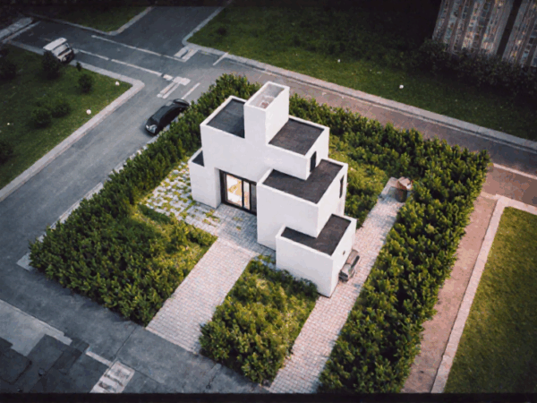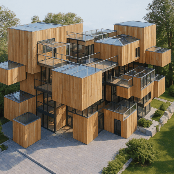 Dieses Beispiel zeigt besonders gut, wie zuverlässig KI selbst alltägliche Formen erkennen und in architektonische Konzepte transformieren kann.