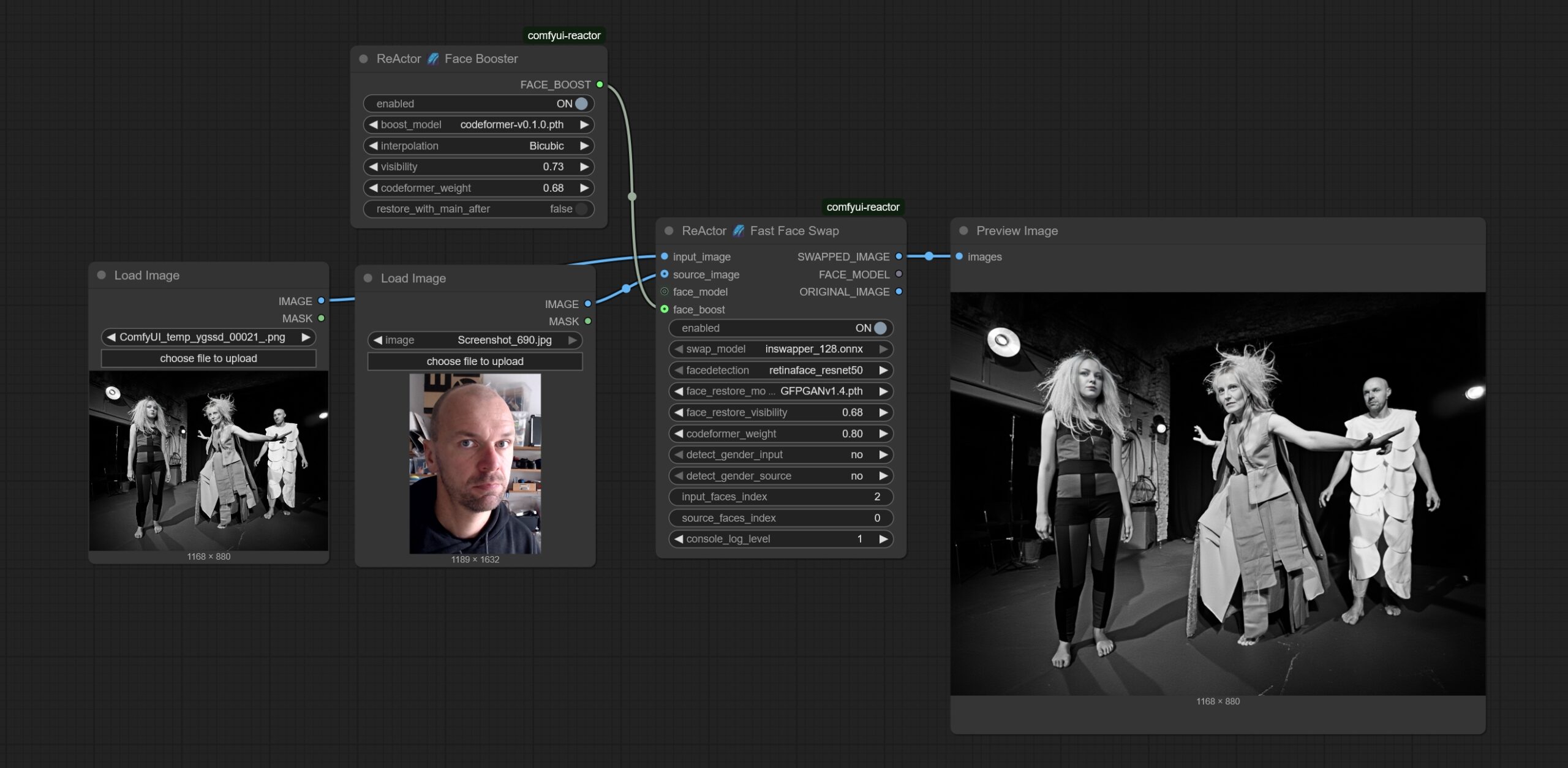 Aktuelle kommerzielle generative Bild- und Videowerkzeuge bieten mittlerweile einfache Möglichkeiten an, deepfakes, bzw. face-swaping durchzuführen. Hinter den, oft spassigen, Interfaces steckt allerdings die drängende Frage – was passiert mit den hochgeladenen Daten? Wer stellt sicher, das diese nicht mißbraucht werden? – Ein Ausweg aus diesem Dilemma ist der Betrieb eines eigenen Face-Swapping workflows. ReActor ist ein einfaches Werkzeug um selbst auf schwacker lokaler Hardware eigene face-swaps auszuführen: https://github.com/Gourieff/ComfyUI-ReActor – Das Werkzeug kann standalone ausgeführt werden, aber auch komfortabel über ComfyUI Nodes.