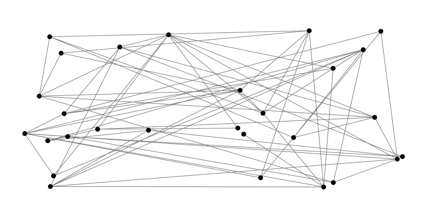 We can create simple networks by creating random connections between nodes. This rather basic approach result is a pretty messy and chaotic layout.