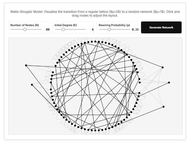 Ein Small-World-Netzwerk ist eine besondere Art von Netzwerk, die zwei wichtige Eigenschaften vereint: lokale Vernetzung und globale Erreichbarkeit. Stellen Sie sich vor, Sie leben in einer kleinen Stadt, wo jeder seine direkten Nachbarn gut kennt. Das ist die lokale Vernetzung. Jetzt stellen Sie sich vor, einige Bewohner haben Kontakte in andere Städte oder Länder. Diese wenigen Fernverbindungen sorgen dafür, dass man mit nur wenigen Schritten jeden anderen Ort erreichen kann. Genau dieses Prinzip beschreibt das Watts-Strogatz-Modell.Wie funktioniert das Modell?